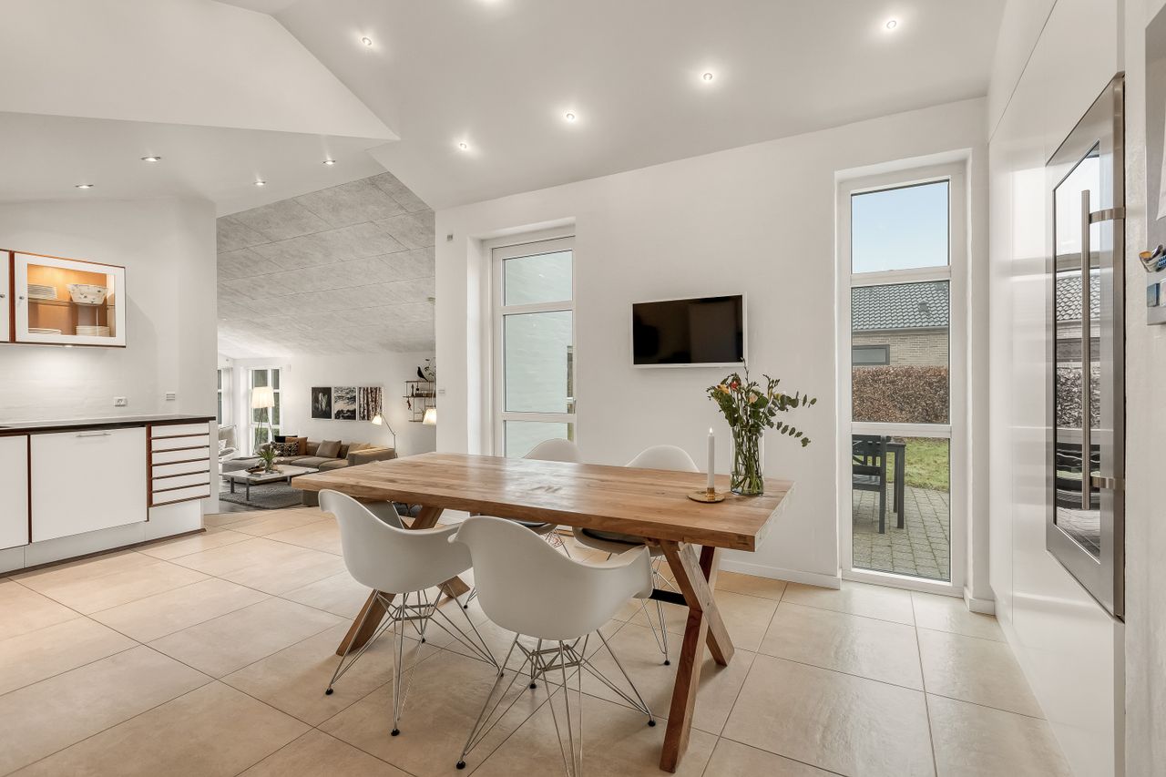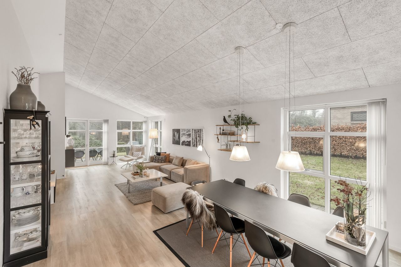 Husets naturlige samlingspunkt er det skønne køkken/alrum, hvor der er god plads til madlavningen, hygge med familien samt udgang til en dejlig terrasse. Det er et Multiform køkken med Vola armatur og god bord- samt opbevaringsplads. Fra køkkenet er der åben forbindelse til den rummelige stue/alrum med højt til loftet. De store vinduespartier inviterer naturen indenfor og giver en skøn udsigt til skoven og den store have. I stuen er der god plads til det store spisebord samt sofaen hvor man kan nyde en god film. Herfra er der udgang til en stor terrasse og den skønne have.