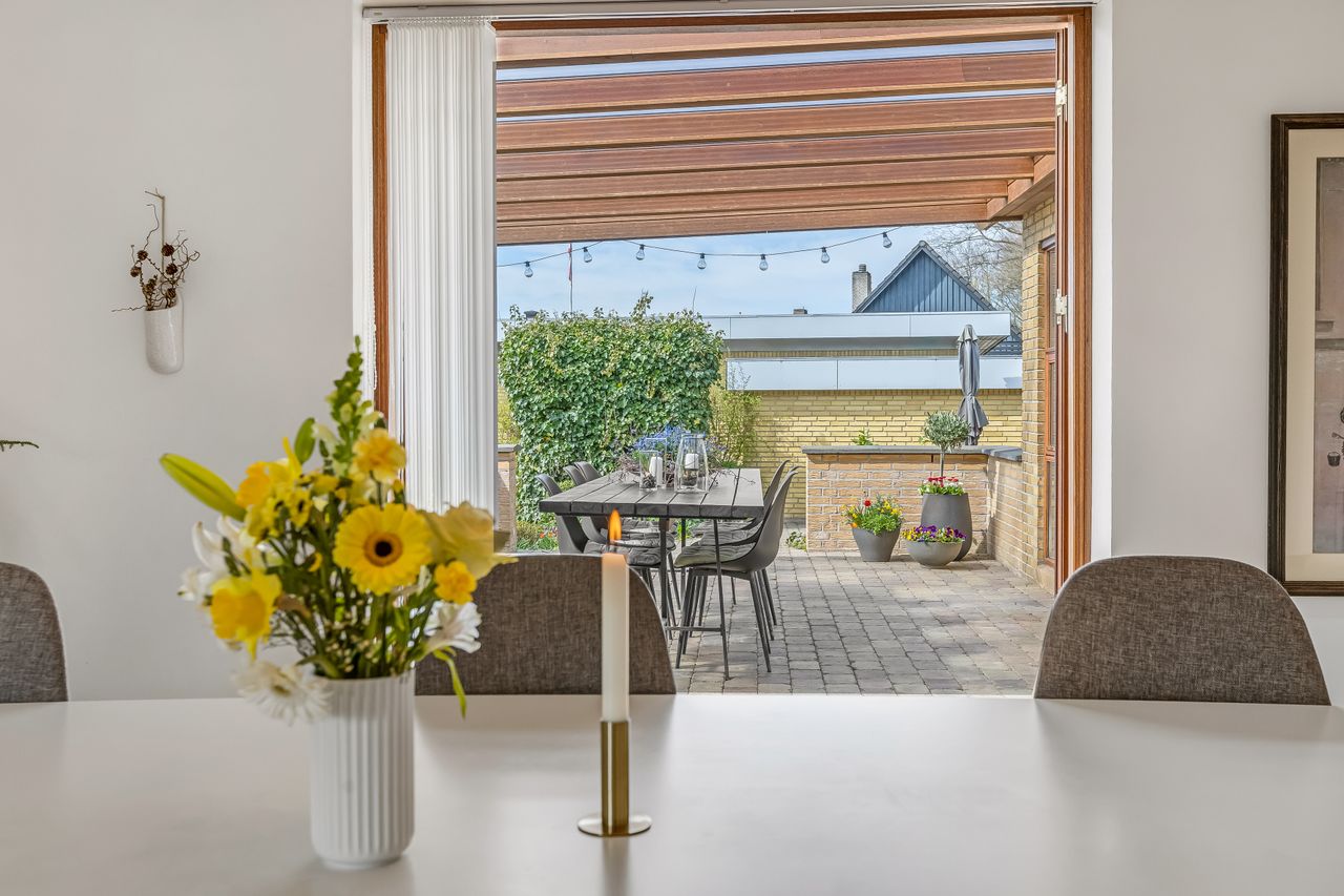 Ønsker du en villa, hvor der er plads til hele familien, hvor du kan sidde på den højt hævede overdækkede terrasse, nyde en kop kaffe, mens børnene leger i det store multirum i kælderen, så er muligheden her.
