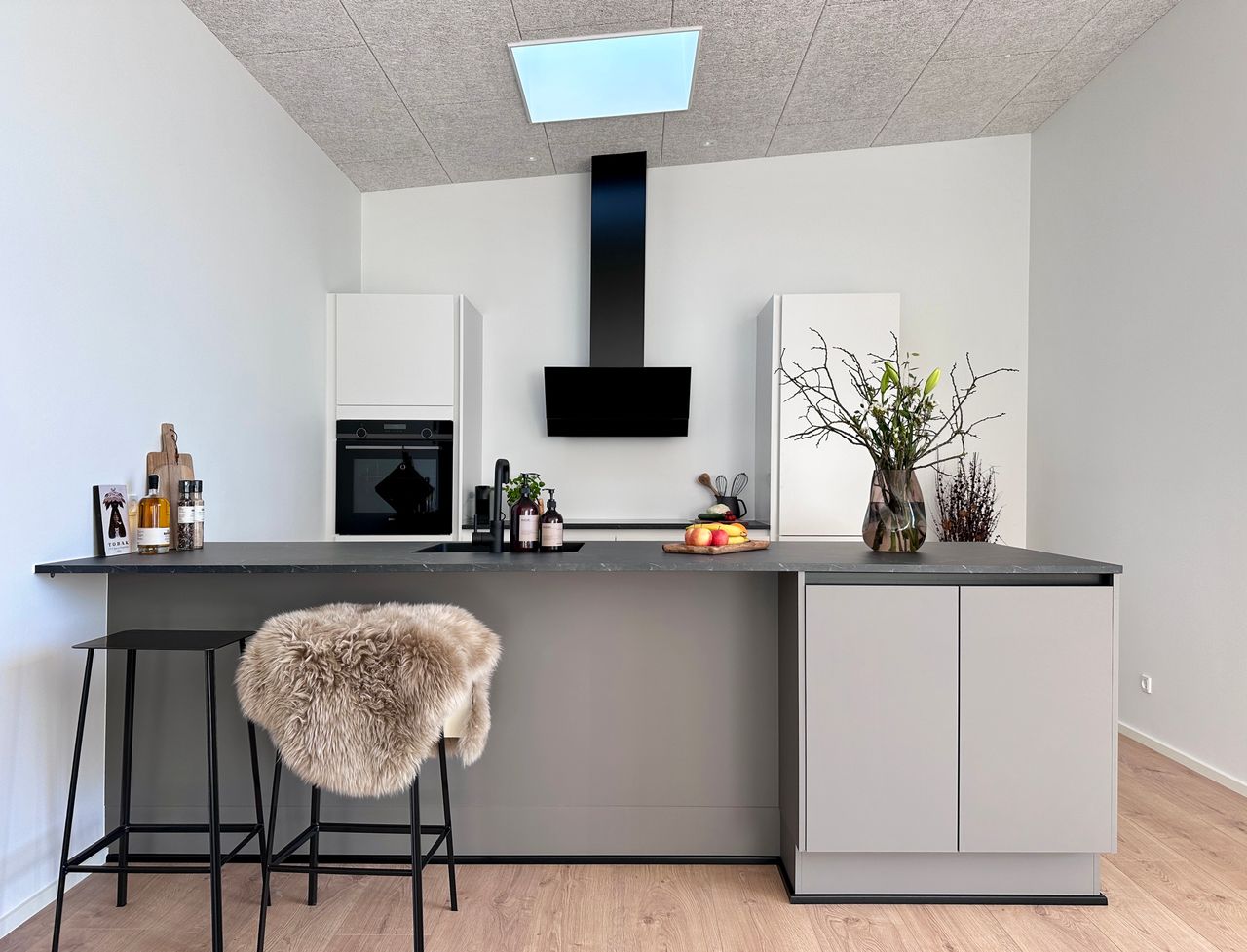 Boligerne er indrettet med et stort og lyst køkken/alrum med højt til loftet, ovenlysvinduer og store vinduespartier.
