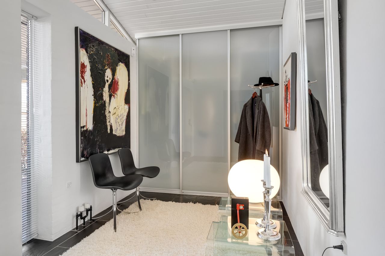 Nu udbydes denne arkitektoniske perle til salg. En helt unik villa med en 1. klasses placering i første række, og med tilhørende stor sydvendt have med udsigt til skøn natur og smukke grønne træer. Denne unikke villa er beliggende med stisystem til både skole og indkøb, hvilket gør det nemt for både store og små.